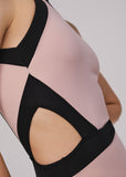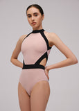 For a contemporary offering, you’ll find solid or two tone, as your heart desires. The cool cutouts on the side and elongated keyhole on the back make this glamorous leotard the height of fashion!