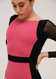 or our big finale, we have our long sleeve leotard for those who want a sleek finished appearance. The square neck line opposing the deep plunge adjustable pinch back are a study in contrasts. Stitching detail at the waist with black trim down the sides will give you the best lines ever!