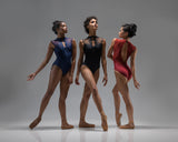 Mirielle leotard is a mix of lace and a delicate embroidered design. With a stunning lace design surrounding the front into open key holes, and an oval open back made of a delicate mesh. This leotard is an elegant one of a kind piece that will compliment any special occasion.
