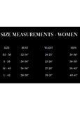 Candy is modeled in size Medium. Model measurements: Height 5'10. Waist 28. Bust 36. Hips 39.