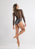A one of a kind leotard! An enticing print and an all around edgy matte leotard turns a stand out item into a total (snake) charmer. Striking snakeskin print emboldens this shapely full-sleeve leotard designed with mesh panels to compliment the curves of any body.