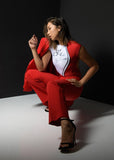 Italian Microfibre, Stretch Mesh Rojo. Blanc Panel. Noir Piping. Statuario Marble.