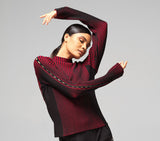 This open neckline sweater on the shoulders emphasizes the wearing of the head. Its ribbed knit stretches with the movement of the body and reveals a contrasting color, for a graphic and modern silhouette.