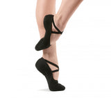 The Dance FIT demi-pointe (Feeling Innovation and Technicity) incorporates the technicality of an anatomical knitting, offering advantages not yet exploited in the world of dance. Analysis of the movement made it possible to precisely define the ergonomics of the liner. The precise placement of support, flexibility and ventilation zones, designed point by point, makes it possible to follow the morphology of the foot. Thanks to its ergonomic pads, this liner provides very good stability on the support points.