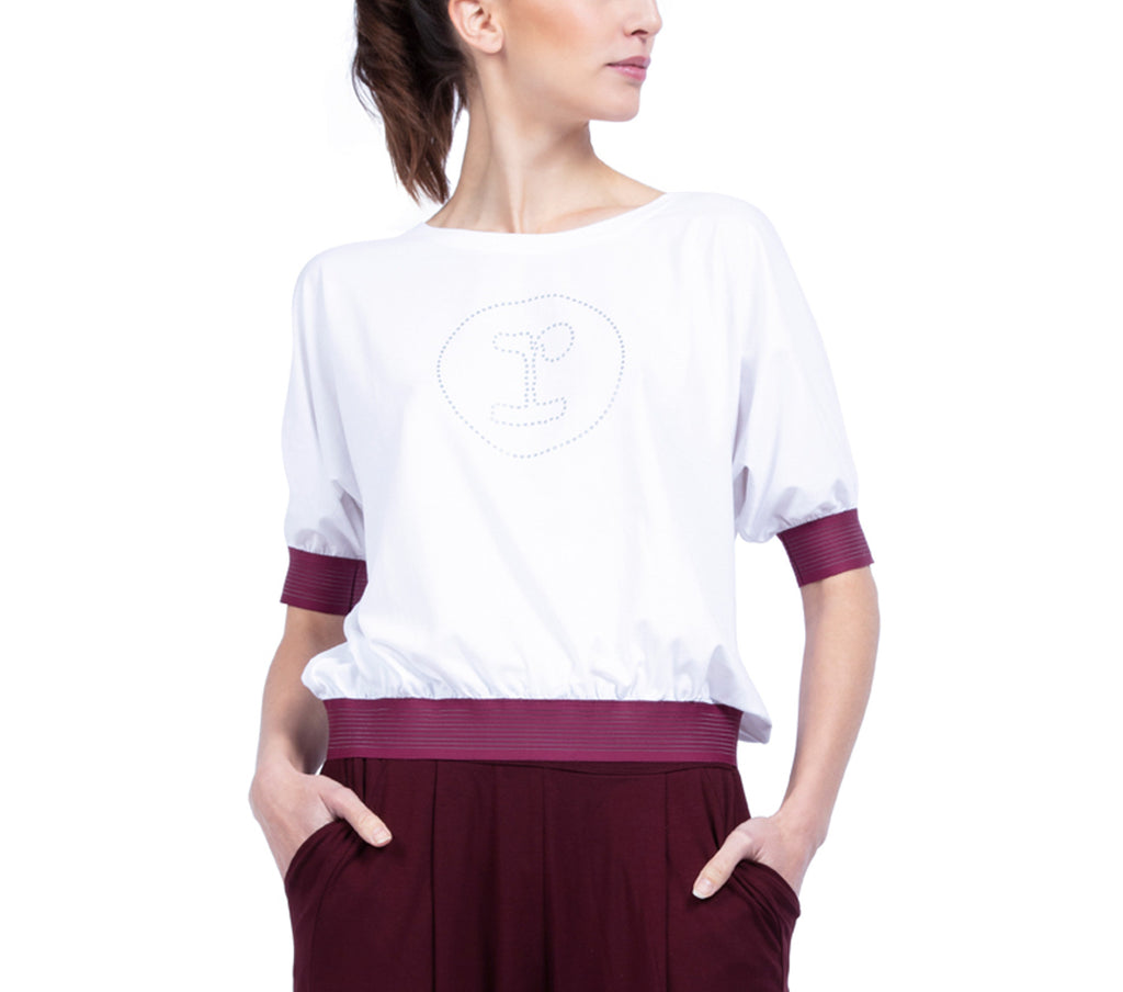 This straight cut t-shirt perfectly accompanies your movements during exercise or everyday. Thanks to its elasticated waist, it sits perfectly on the hips and draws a feminine and sporty silhouette.