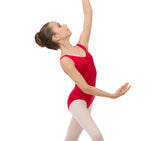 This thin straps leotard for little girls has a rounded neckline with gathering, to highlight the dancer's upper body. The fancy back and the cut under the bust enhance the classic appearance of this model.