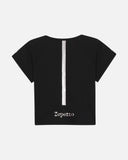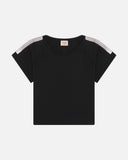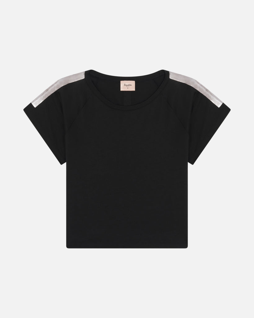 Details : Raglan short-sleeved top. Round neckline. Square shape. Pearl effect Repetto band and logo.