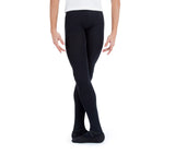 Black opaque tights with feet for men. Tights are a dance essential. Elasticated waist. Gusset. Transparent transfer of the Repetto logo on the front.
