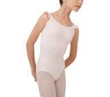 The leotard DE632 for young girls has a square neckline for a good posture. The wide elastic at the top of the bust helps the leotard to suit perfectly to the dancer. The small flounces on the shoulders bring fancy to the product and bring a touch of femininity to the neckline.