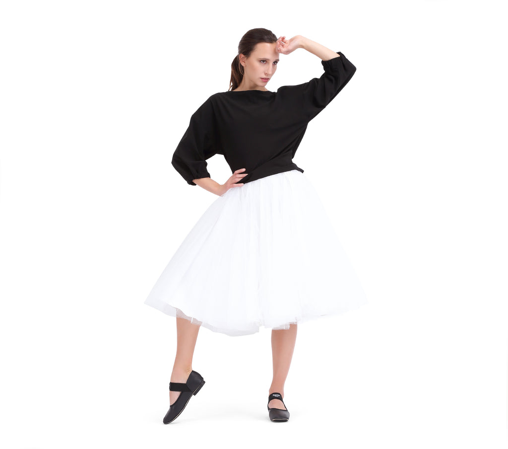 Inspired by the iconic Repetto tutu, this skirt is the urban version of the dance petticoat. Composed of superimposed layers of fine and fluid tulle, it lets guess movements for a light and modern silhouette.