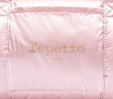 Details : zip closure. Front patch pocket. Slightly padded. Side knots. Rose gold Repetto logo. One interior zipped pocket. Pink nylon lining.