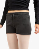 Charcoal gray shorts. Ribbed waist with tightening tie. Tone-on-tone R jacquard logo on the leg.