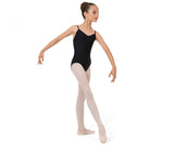Leotard for little girls highlighting the work of the dancer's upper body, thanks to its thin straps and clear neckline. This model is lined on the front. V neckline, fine collar.