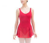 This fine-straps tunic has a rounded neckline with gathers, to highlight the dancer's upper body. The fancy back and the underbust cut enhance the classic look of this model. The muslin skirt lets you guess the movements.