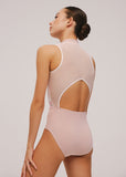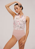 This band collar leotard will give you the illusion of extra long lines - between the high neck, the invisible zipper on the front and the low waist line, you can’t go wrong here! Sheer mesh overlay on the front floral print exudes class. The back features a strong mesh upper and a soft triangle shaped keyhole.