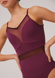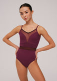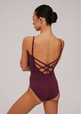 The deep plunging bust on this delightful adjustable strap camisole leotard is accentuated with our strong mesh above and below the stitching detail. Interwoven double criss cross straps on the back can’t be missed!