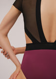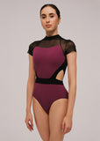 Color blocking has never looked more stylish than in this absolutely fabulous cap sleeve leotard! The side cut outs and long keyhole on the back are completely haute couture.