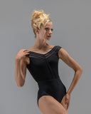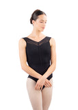 The Daphne leotard features a v-cut structured mesh and mid-low cut ruched back. This leotard highlights a classic feminine cut, making this stunning piece a must have for any dancer.