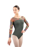 The Valentina leotard features a classic long sleeve mesh with a delicate floral design, paired with a low V back design to accentuate a flattering low back shape with your moves.
