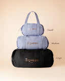 The large duffel bag is a classic in the bag collection. Its large handles allow it to be worn over the shoulder, and its voluminous shape makes it easy to carry all your belongings. Its various markings and finishes make it a sleek bag with whimsical, refined, and elegant touches. A true must-have for anyone looking for a bag that combines style and practicality, it will accompany you on all your travels.