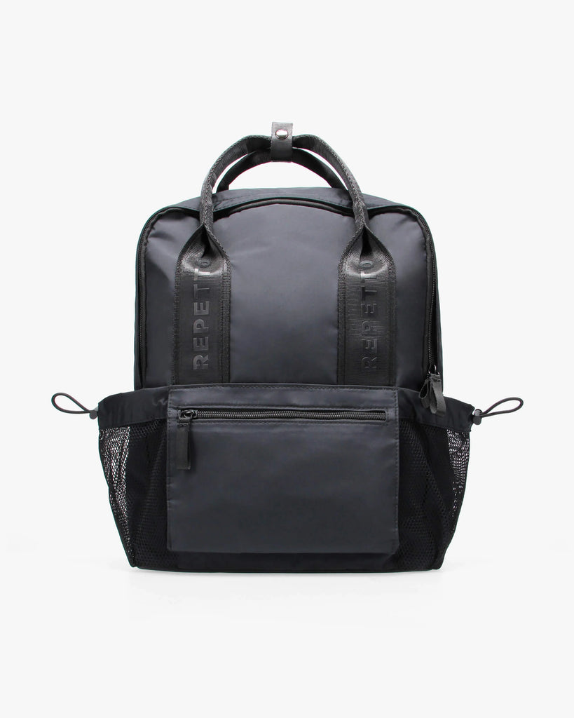 Details: • Adjustable back straps • Zipper closure • Water-repellent nylon • REPETTO logo on straps • Two mesh outside pockets • Zipped front pocket Nylon lining.