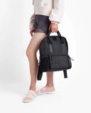 The large size of this nylon backpack is ideal for carrying all your belongings, featuring a small zippered front pocket for easy access to small accessories and two side pouches. Additionally, this backpack includes a compartment for your laptop, perfect for secure and organized transport. Its modern and functional design makes it the perfect accessory.