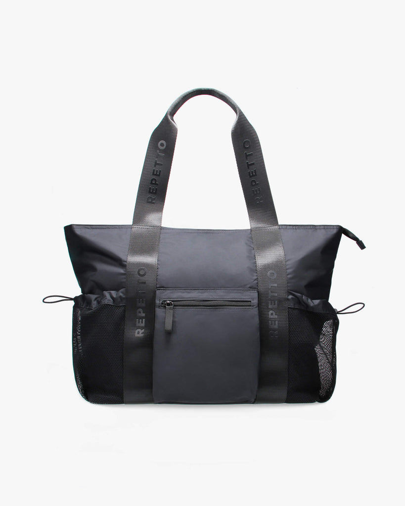 Details : • Shoulder carrying • Zipper closure • Water-repellent nylon • REPETTO logo on straps • Two large mesh outside pockets Nylon lining.