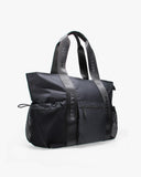 This large nylon tote is perfect for carrying your belongings, featuring a small zippered front pocket for easy access to small accessories, as well as two side pouches. Its modern and functional design makes it the perfect accessory.