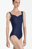 Wear Moi microfiber basic tank leotard with front pinch. Full front lining and U-cut back.