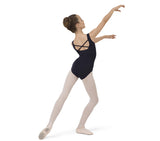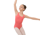 Girl’s leotard with large straps. Round front neckline which provides a perfect maintain of the upper body, while allowing a great freedom of movements. The fantasy in the back enhances the classic aspect of the style. Available in adult size and in many colours this is a perfect product for the different levels of dance schools. Transparent transfer of the Repetto logo on the back. Mat aspect.