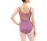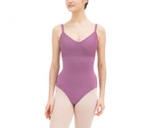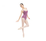 his leotard for women with double straps, has a V neckline at the front and a large back neckline. The front topstitching highlights the silhouette of the dancer. The lace at the chest and at the back brings fantasy to the product, while enhancing its elegant character.