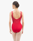 This thin straps leotard for little girls has a rounded neckline with gathering, to highlight the dancer's upper body. The fancy back and the cut under the bust enhance the classic appearance of this model.