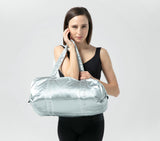 The duffel is an iconic model of the dance bags collection, which delights the young dancer thanks to the diversity of its color variants. Its round and practical shape offers an ideal use for storing all dance gear. Its large handles allow it to be worn over the shoulder. The silver zip brings a modern and fancy touch, and is the link with the jacket from the Athleisure line.