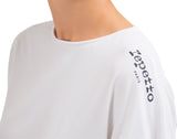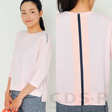 The vertical and colored bands on the back as well as the square cut of this t-shirt provide a sporty and graphic look.