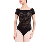 This raglan short sleeve leotard has an original cut with a square neckline. Made in our rose lace, it highlights femininity and elegance.