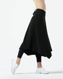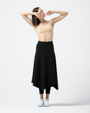 This skirt designed in a stretch mesh ensures a timeless style. Its wrap-around shape and more pronounced length on the side, offer dynamism to the silhouette and total freedom of movement.