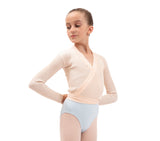 The fancy knit wrap is a basic dance class. Its V-shaped neckline and its tie to tie around the waist, highlight the wearing of the head and the silhouette of the dancer. Its ribbed knit stretches with the movement of the body and reveals a contrasting color, for a graphic and modern silhouette.