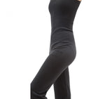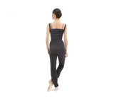 Anthracite gray jumpsuit wide straps. Bust and lower leg tightened by ribbing. Logo jacquard R tone on tone on the leg.