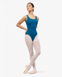Details : Tank top shape. Cutout under the chest. Rounded neckline front and back. Fancy back. Integrated chest support. Transparent transfer of the Repetto logo to the back. Matte appearance.