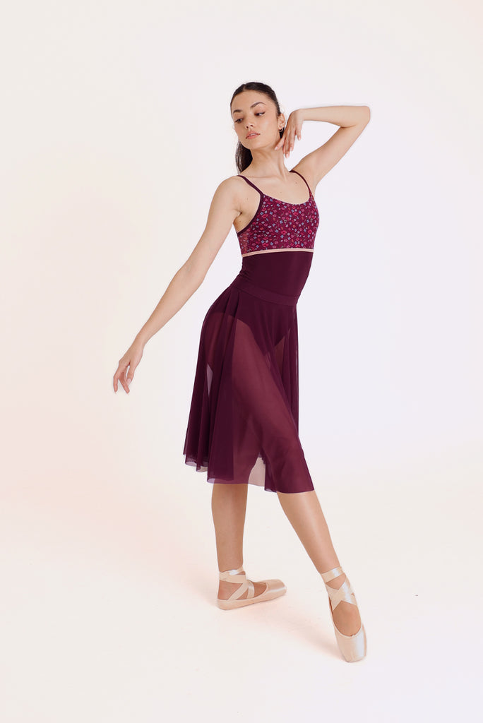 Polyamide elastic waistband for greater grip. With a lot of flight to float during your pirouettes thanks to its 360º bias cut, complete circle without seams. Seamless hem for a very pretty drape.
