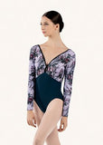 Meet SASHA, a lavish long-sleeved leotard, boasting a dramatic V bust line juxtaposed with a domed empire waist