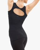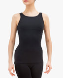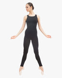 Long black top with large straps. Fancy back. Chest support. Transfer of the Repetto logo. Mat aspect.