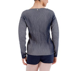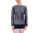 This open neckline sweater on the shoulders emphasizes the wearing of the head. Its ribbed knit stretches with the movement of the body and reveals a contrasting color, for a graphic and modern silhouette.