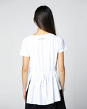 This t-shirt is distinguished by its adjustment link for a pleated effect on the back. Its long cut and longer yoke on the back reinforce the slender character of the silhouette. The softness and fluidity of the mesh ensure optimal comfort.