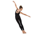 Academic black wide straps for little girl. Round neckline. Fancy back with crossover on the back. Integrated chest support. Transfer of the Repetto Logo. Matt appearance.
